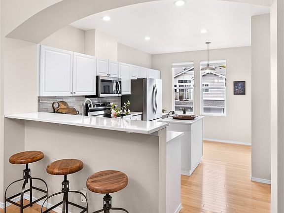 [THE RIDGE AT HIGHLANDS EAST] This spacious and light-filled townhome-style residence offers an open, airy floor plan with 9-ft ceilings and cozy gas fireplace. The updated kitchen features quartz counters, new stainless-steel appliances, prep island & office nook. Guest half bath on main floor. Upstairs, discover TWO PRIMARY ENSUITES with generous space & privacy — ideal for guests or shared living. Walk out access to your PRIVATE PATIO & BACKYARD. Tandem two-car garage with storage. Beautifully maintained community with parks. Fantastic location near Willis Tucker County Park with trails & one of the areas best dog parks! Snohomish schools, shops, dining, Mill Creek Town Center & YMCA just minutes away. [REFINED LIVING MADE SIMPLE]
