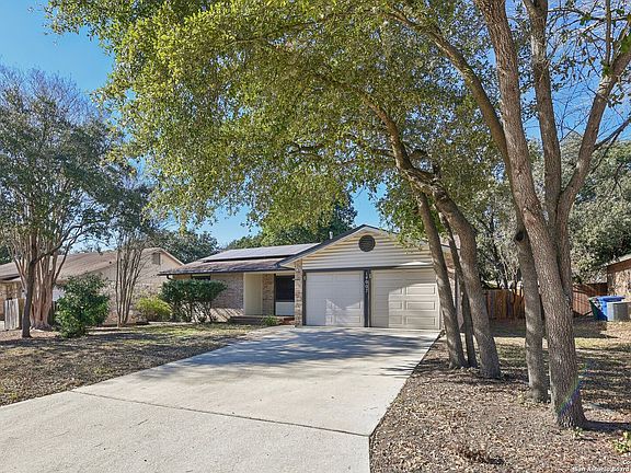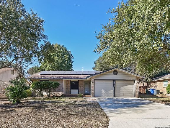 3 bed, 2 bath home (1275 sq ft) near McAllister Park in San Antonio. Well-maintained, carpet-free interior, fireplace, 2-car garage, covered patio, mature trees in backyard, and PAID-OFF solar panels! Schedule a showing today!