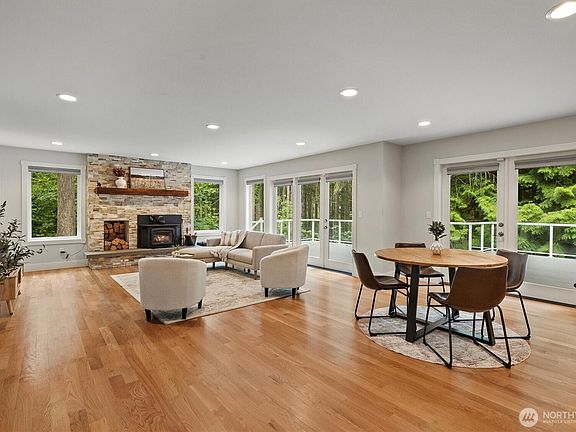 Tucked away on 2+ private acres, this 2020 custom build and land is a woodland retreat. Step inside to a chef's kitchen with walnut cabinets, Bosch appliances, and a double oven made for cozy gatherings. After a muddy adventure, the mudroom welcomes you with built-ins and its own shower. Curl up by the rustic woodburning fireplace, or retreat to a primary suite with vaulted ceilings, and a spa-like bath w heated floor. Down the hall you'll find the additional 2 bedrooms and additional flex/bonus room upstairs. Outdoors, the back deck stretches the length of the home. Detached 2-car garage w/shop and 600 sq ft above (DADU potential). Basement plumbed for a 2nd kitchen. Very close to highway, shopping, etc! Lender offering a 1% rate buydown!