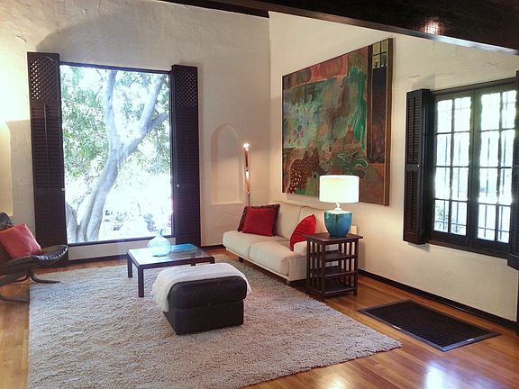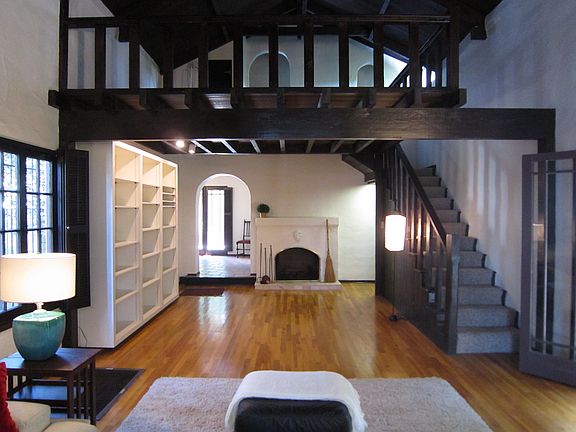 Nestled amongst shade trees and gardens is this updated 1920s Spanish with renovated KIT and BA's, wood & tile flrs, open-beam ceilings and a loft. French doors lead from living room to patio shaded by a fig tree. The dining area opens up to the back yard with its trees, flower and vegetable gardens. Off the kitchen is a 1/2BA + laundry. Upstairs are 2 bedrooms(currently opened up and being used as 1 bedroom), a loft area with new carpet, plus 1 full bath. Close to studios, bike paths, Griffith Park, Equestrian Center. No signs on property. By appointment. Text MLS113693 to shortcode 85377.