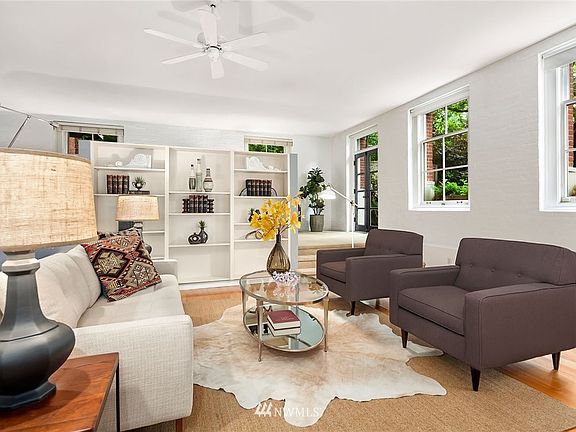 Fantastic large studio unit (1174 sf) in the historic West Queen Anne School. Located on the first floor, with a very private patio, this unit features tall windows and hardwood floors. Completely painted and cleaned, this condo is move in ready. The perfect place for entertaining with two sets of french doors leading to the landscaped outdoor patio space. The building also provides a secure covered garage, great storage, an exercise room, and manicured grounds. Fantastic home!