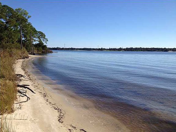 Beautiful waterfront property with just over 50 feet along Bayou Grande just minutes from Navy Point Boat Ramp and walking trail. Incredible 180 degree view overlooking the lighthouse, natural beach, and Blue Angels practices. Spot dolphins from your new home. Build a beach retreat or bring your RV and live the Florida dream!
