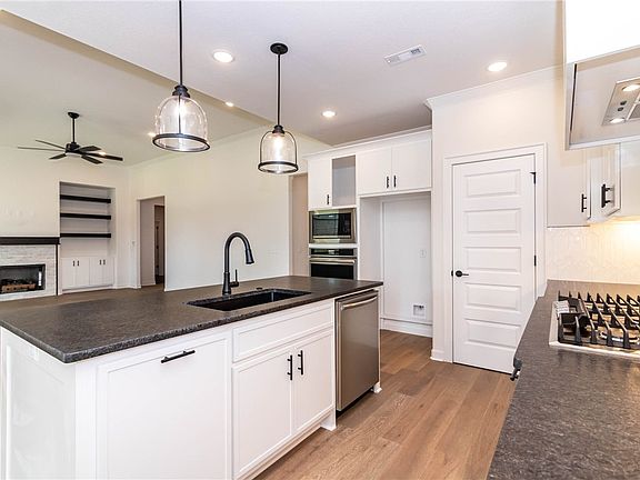 Smartly designed, new construction home with open concept floor plan! Some features include a gas fireplace, solid surface flooring in the living areas, ceramic tile in the wet areas, carpet in the bedrooms, granite counters through out, stainless appliance package, covered back porch with wiring for cable and plumbing for gas grill, cellulose insulation, low e windows, insulated garage doors, gas water heater, privacy fenced back yard, full gutters, 2" faux wood blinds, and more.