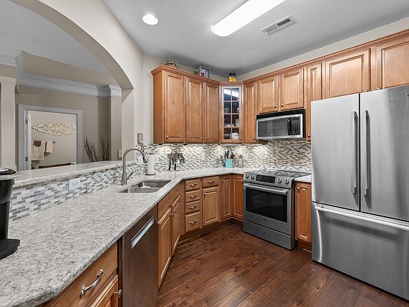 Welcome to this stunning 2-bedroom, 2-bathroom condominium offering a private garage parking space and private garage entry. BRAND NEW HVAC and WATER HEATER! The living area seamlessly flows into a delightful patio that overlooks a tranquil wooded lot. The well-appointed kitchen boasts ample counter space, and elegant cabinetry. The master bedroom is a true retreat, featuring a spacious walk-in closet and a generously sized en-suite bathroom. The second bedroom also offers ample space and easy access to the second full bathroom. At the heart of the community, you'll find a stunning pool area that serves as the hub of summer activities and relaxation.
