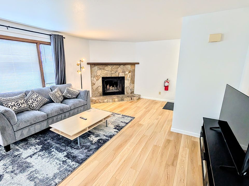 Large corner decorative fireplace (not available for use) makes the living room look elegant and inviting. Brand new full bath with bathtub.