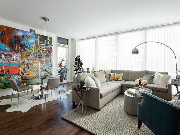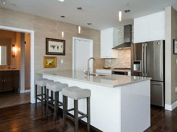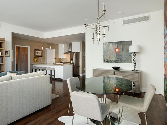 Light filled open floor plan unit with floor to ceiling windows, hardwoods, designer finishes, pantry, Quartz counters in kitchen, marble counters and herringbone tile floor in the secondary bathroom . Large master suite with walk-in closet and 5-piece bath. Both bedrooms have black out shades (top down shades in the master). 10x10 covered patio off the dining area. Comes with 2 parking spaces in a heated attached garage. Overlooks the building's private courtyard. The building is on the dead end where there is a pedestrian bridge over the Cherry Creek to a park. Agent Owned. Up to 2 people only. Available May 1, 2021. 1 year lease.