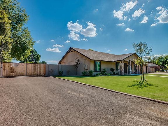 Rare opportunity to own a horse property in Tempe in renowned Sunburst Farms. Property is just shy of 1 acre with flood irrigation & manicured landscaping front & back. Spacious greatroom floorplan with vaulted ceilings & travertine flooring throughout. Kitchen has been recently remodeled, including granite counters with ogge bullnose edge, upgraded cabinetry with soft close drawers, travertine backsplash, stainless steel appliances, pantry, in-cabinet & under cabinet lighting. Remodeled bathrooms with granite counters, custom cabinetry & tile surrounds at showers. Solid wood doors throughout, upgraded baseboard & bronzed oil rubbed hardware. Master bedroom offers french doors to back patio. Roof new in 2011 & updated dual Pane Low-E windows. Custom storage room with built-in safe.