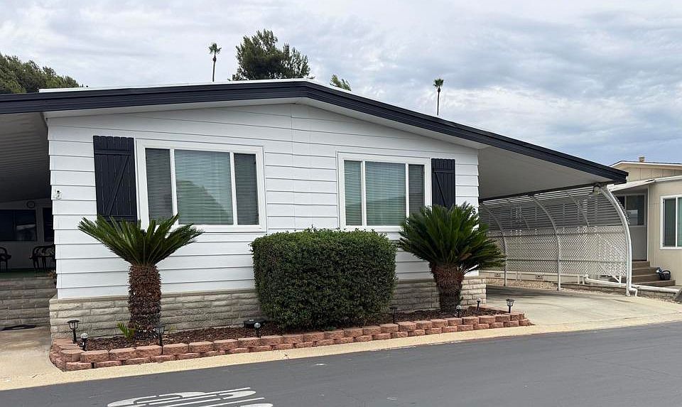I would like to present a beautifully maintained double-wide residence situated on a spacious corner lot. This home is located in the sought after 55+commuity of Madrid Manor in San Marcos. It features numerous upgrades and amenities, including wood-look laminate flooring throughout, newer kitchen appliances, two skylights, and a newer roof. The water heater has also been recently replaced by the sellers. The main suite offers a walk-in closet and a walk-in shower. Additionally, there is an 8 x 18 California Room, providing versatile extra space ideal for an office or craft area. The property also includes an extended carport with additional guest parking, conveniently located adjacent to the main guest parking area. Residents will also benefit from the many park amenities and activities available for their enjoyment.