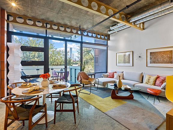 Private balconyFloor to ceiling windowsStainless steel bosch appliancesDowntown viewsRemodeled and updated condoExposed metal beamsCustom cabinetry and woodwork