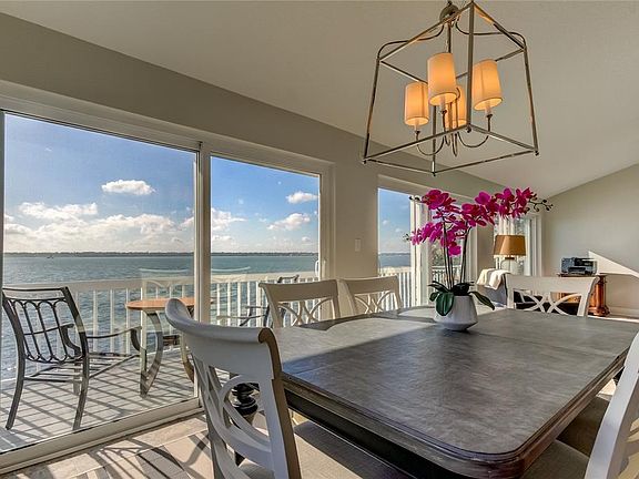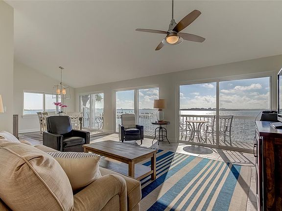 Experience coastal living at its finest in this updated, fully furnished 2BR/2BA condo featuring vaulted ceilings and intracoastal water views from the moment you walk in. The kitchen and bathrooms boast quartz countertops. Both spacious bedrooms include built-in closets and the home offers a rare walk-in pantry plus a convenient attic utility access. Located in a pet-friendly community, this property is your personal slice of paradise. Enjoy resort-style outdoor amenities including a waterfront pool with waterfall, gas grills and a stylish outdoor bar area with ample seating- perfect for entertaining or relaxing by the water. With an easy commute to Tampa and St.Pete, you'll have the best of both worlds: peaceful waterfront living with quick access to vibrant city life. Turn the key and embrace the Sand Key Lifestyle! UPDATED, FURNISHED AND READY FOR YOU TO ENJOY!
