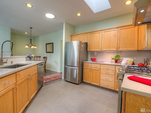 Bright 3 bed, 1.75 ba, 2 car garage, completely renovated home located in DuPont. 3 skylights, two solar cells, gas fireplace with custom quartz surround, covered porch & a spacious garden patio with a 6 ft. privacy fence. The chef inspired kitchen has stainless steel appliances, gas stove, quartz countertops & under cabinet lighting. Open floor concept, solid hardwood floors throughout, tile flooring in kitchen & baths. On corner lot, near walking trails and the Clock Tower Park. Close to JBLM