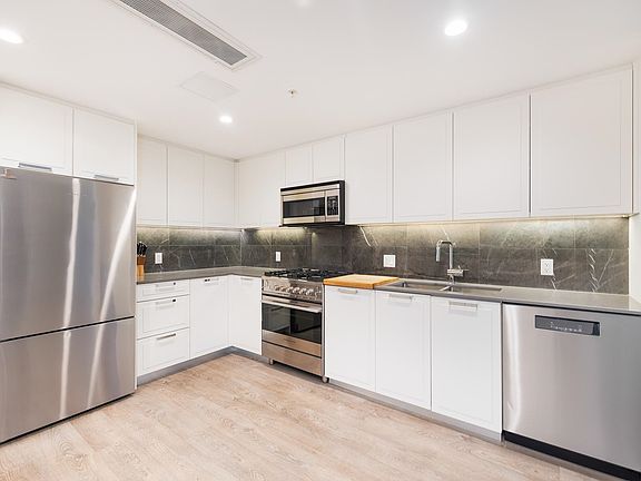 Large private patioSleek finishesGas rangeQuartz countersSoft-close cabinets