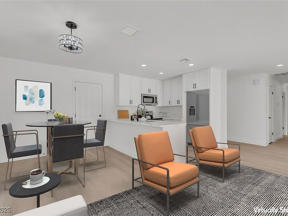 Get a head start, seller is contributing to your closing costs!! Beautiful, renovated home featuring 4 bedrooms and 2 bathrooms in a CORNER LOT and NO HOA! This home is move-in ready and has an open floor plan, fresh neutral tones, and tons of natural light. The kitchen shines with stainless steel appliances, quartz counters, white shaker cabinets, and matte black finishes. Enjoy spacious bedrooms, a large great room, and a private backyard with patio. Modern upgrades, updated flooring, designer lighting, and unbeatable convenience. This home has it all! Tour today!
