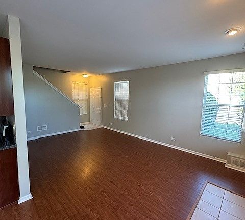 Spacious townhome in Millbrook, Algonquin, within walking distance of Algonquin Commons and minutes from Randall Road shopping and I-90. The main level offers an open layout with a living area, kitchen with stainless steel appliances, island seating, ample cabinets, counter space, dining area, powder room, and access to a two-car garage with storage. Upstairs features a primary suite with two walk-in closets and private bath with dual sinks. Two additional bedrooms-one with walk-in-plus a full bath and laundry room complete this level. Outside is a private patio with open green views. Close to the library, paths, and shopping. Available now. Short-term rentals not permitted.
