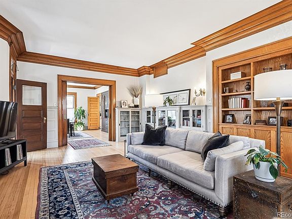 GORGEOUS HOME, FABULOUS LOCATION ONE BLOCK FROM CHEESMAN PARK. This exceptional property extends the full main floor of this beautiful 1892 built Denver Square home. Approximately 1,757 main floor square feet includes two bedrooms, two baths & a versatile sunroom/flex space. The charm of yesteryear is beautifully preserved with exquisite crown molding, intricate millwork & hardwood floors exuding warmth & character. High ceilings create an airy & spacious atmosphere, while large windows flood the home with natural light.
