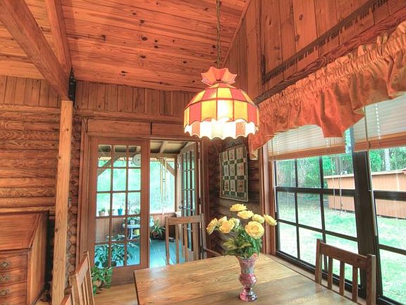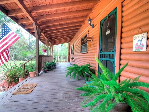 Lovingly maintained log home on 3.6 very private acres with another 0.9 acres on other side of Flagler Trail. Soaring wood ceiling, wood floors, and rustic log walls make every day a vacation in this country retreat. Enjoy the breeze through the tall pine trees from the screened porch in back overlooking the solar heated pool. Main level features a great room with office alcove, bright dining room, charming kitchen with tile counters and maple cabinets and real furniture plus an oversized walk in pantry and large laundry room with plenty of storage space. Down a hall are two bedrooms and one bathroom while upstairs is a private oversized master retreat with bath featuring a garden tub. Besides the oversized garage there is also a 16x20 workshop and plenty of space to spread out. NO HOA and horses allowed. Transferable termite bond and home warranty.