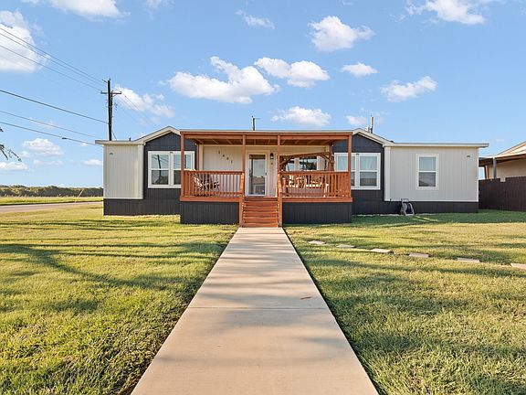 ATTENTION!!! This is a must-see home! Sellers are motivated. PRICE CHANGE on this beautiful home. You will love this beautiful Clayton home with a farmhouse Flex Manufactured look. It is very well maintained, located close to schools, on a corner lot with a paved driveway & sidewalk, close to the Chisholm Trail Parkway and the new Amazon Operation Facility. It offers a 10x20 covered front porch that provides storage underneath the porch and room to sit and enjoy the sunset. The heart of this home is the kitchen that provides a long-oversized island with room for seating on both sides. This kitchen features crisp white cabinets, a farm sink with windows completely across the back of the room and counter space galore with black appliances. The living room is spacious and has a cozy fireplace with several settings for those crisp autumn nights. The primary bedroom is spacious along with the primary bath. These 2 rooms provide double walk-in closets, dual vanities, a standalone shower and a large soaking tub. A retreat that anyone would enjoy. The other rooms are split from the primary suite. You will find 2 more bedrooms each with walk-in closets with a Jack-and-Jill bathroom. Whomever is responsible for doing the laundry will find the utility room very desirable. One bedroom is now being used as a media room, and the other flex space is a game room. You could definitely use them for whatever serves you best. Out in the back yard you will find a 10x12 Ulrich Premier Portable Shed perfect for storage or a workshop. Last but not least this home provides a built-in humidifier and a 3.5-ton hybrid HVAC system located in the attic. Come see this lovely home before it's gone.