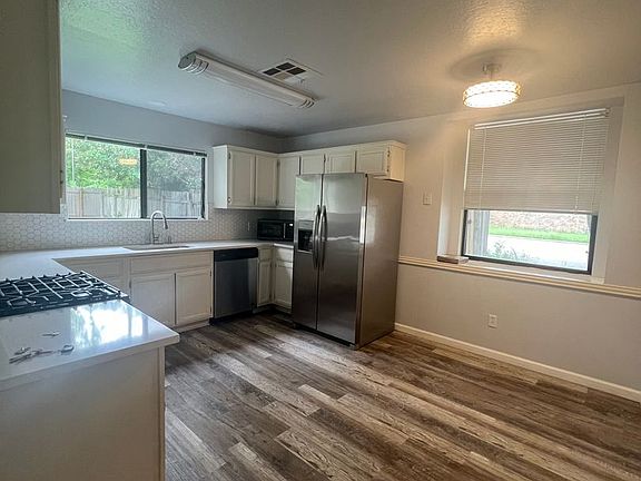 Enjoy a bright and open floor plan with high ceilings, a generous living area, and a functional kitchen with plenty of counter and cabinet space. The primary suite includes a walk-in closet and a private bath, while the large fenced backyard wraps around the home perfect for relaxing, entertaining, or letting pets play freely with extra privacy.