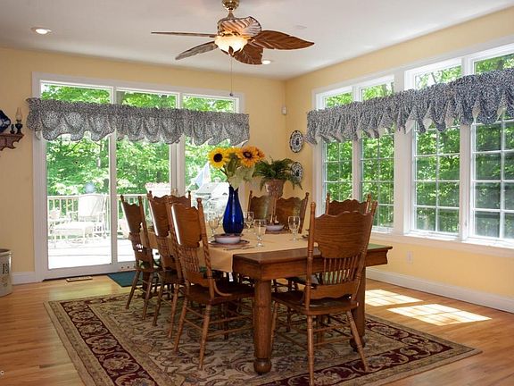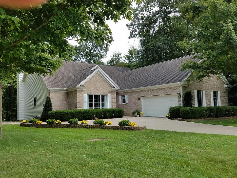 WATERFRONT HOME LOCATION: Charming custom built home with 219 feet of St. Joseph River frontage. This home sits on two wooded acres and includes a small cabin and a boat dock! This home is perfectly located fifteen minutes from the South Bend Airport, twenty minutes from Lake Michigan, 15 minutes from the I 80 / 90 Toll Road, 20 minutes from the I-94 Expressway, 15 minutes from Notre Dame, 20 minutes from shopping malls, 90 minutes from Chicago, 5 minutes from the Michigan Trillium Ravine Preserve, 10 minutes from Fernwood Botanical Gardens and Nature Preserve and, set in the midst of wine vineyards and fruit orchard country. MAIN LEVEL: The foyer leads to an open-plan living-dining-kitchen, featuring a wall of windows & French doors for natural light. Hardwood (oak) floors are throughout all rooms, except for the bathrooms, which are tile floors and one bedroom which is carpeted.