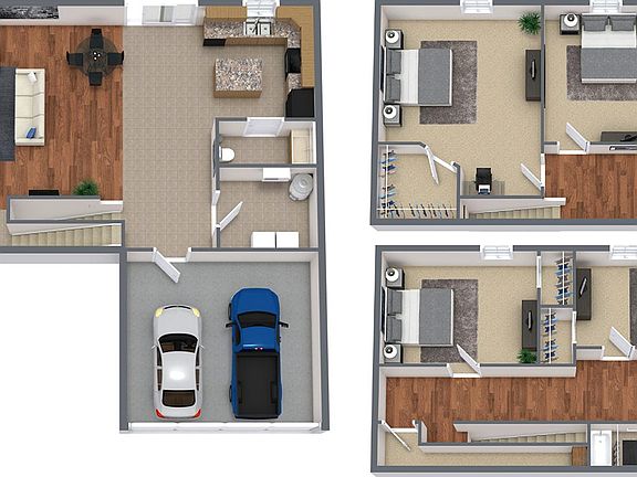 - Exterior features: 3 Story Unit, A 2 car garage is included with each unit., Flexible Lease, Flooring: Laminate, One Year Lease, Online Maintenance Portal, Online Rent Payment, Pet Park, View Type: Wooded