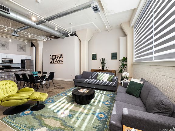 Own a piece of San Antonio's story in the Steel House Lofts, where century-old history meets modern luxury. Once the Peden Iron & Steel building designed by famed architect Atlee B. Ayres, this landmark has been reimagined into one of the city's most vibrant residential communities. This three bedroom, two bath, 1,841 square foot loft captures everything people love about Southtown living: soaring twelve foot ceilings, dramatic exposed brick, polished concrete floors, and oversized steel-framed windows that flood the space with natural light. Every detail reflects a perfect balance of industrial character and modern comfort. The open kitchen is built for gathering, with granite counters, stainless appliances, and shaker cabinetry that flow seamlessly into the expansive living space, equally suited for entertaining or quiet evenings at home. The primary suite is a private retreat with a spa-inspired walk-in shower, floating dual vanity, and custom closet system. Two additional bedrooms provide endless flexibility for guest accommodations, a creative studio, or a home office. Step outside and the lifestyle unfolds with a resort-style lap pool with cabana and waterfall, outdoor grills and dining patio, a fitness center, dog park, and secure gated parking with two premium covered spaces included. What truly sets Steel House Lofts apart is its location. In the heart of Southtown's art district, you are steps from Blue Star, the Riverwalk, Hemisfair, King William, galleries, breweries, and some of San Antonio's best restaurants and nightlife. It is walkable, vibrant, and the lifestyle many dream about when they picture downtown living. This residence also has the option to be purchased fully furnished, giving you the opportunity to move in effortlessly or enjoy a true turn-key option, With strong demand for mid-term and long-term rentals in Southtown, the property offers excellent potential for those looking to combine personal enjoyment with investment opportunity. Steel House Lofts is more than a home. It is a lifestyle, a statement, and a rare piece of San Antonio history. Schedule your private showing today.