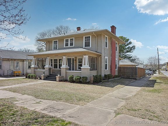 Charming 3-bedroom, 2.5-bath craftsman-style home nestled in the heart of downtown Bartlesville. Situated on a desirable corner lot in a peaceful neighborhood, this two-story gem offers both style and functionality. Featuring updated kitchen appliances, new counters & backsplash, gas stove, formal dining room, and modernized fixtures throughout. This home has its beautiful, original, hardwood floors to maintain its timeless charm. The master suite boasts a private bath and a walk-in closet. Enjoy the spacious deck, covered porch, and a fully fenced private backyard perfect for relaxation or entertaining. Additional highlights include upgraded vinyl windows, basement storage, and abundant charm paired with practicality. A must-see home offering comfort and character in every corner!
