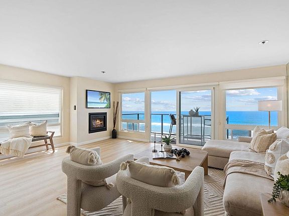 Enjoy panoramic whitewater views and true beachfront living from this top-floor corner unit. With floor-to-ceiling windows and a spacious covered deck, this condo captures the best of coastal Oceanside—sunsets, surf, and sea breezes all from the comfort of home! This light-filled residence features brand new flooring and an open living space that seamlessly connects to the expansive ocean-view deck, ideal for outdoor dining or relaxing while watching dolphins swim by. The gated, 10-unit community provides exclusive access to a pristine private beach complete with palapa shade and steps leading down to the water, as well as underground parking, secure entry, and private storage for all your beach gear. Set in a prime location, this home is walking distance to Oceanside’s growing collection of top restaurants, cafés, and shops. Stroll along the beach to the iconic Oceanside Pier, visit the historic Top Gun House, or head to the picturesque harbor and marina for paddleboarding, kayaking, and waterfront dining. Just a short drive away, Carlsbad Village offers even more to explore with boutique shopping, craft coffee houses, and a lively coastal atmosphere. Experience the best of the coastal lifestyle in one of Southern California’s most dynamic beachfront communities. Make the ocean your backyard and claim your place on the sand!