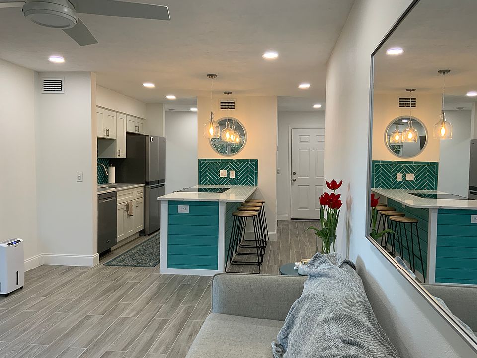 Remodeled, modern, pet friendly, second floor unit in gated community with 24-hr security. Pool, hot tub, gym, 2 dog parks, minutes from beach. Gorgeous nature preserve views from mater bed & balcony. High speed WiFi, cable, fully stocked kitchen. Everything you need for a winter haven.
