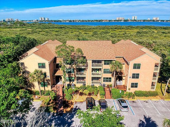 RIVERFRONT VIEW! Stunning sunrises greet you each morning from your balcony & east facing master bedroom overlooking some of the best views in Daytona. This top-floor split plan unit features incredible treehouse-like views of the Intracoastal waterway & Daytona Beach skyline, vaulted living room ceiling, in-unit washer & dryer, balcony w/storage closet, walk-in closets in both bedrooms, quartz counters, updated bathrooms and kitchen with soft close shaker cabinetry. Enjoy maintenance free living at the Preserve with monthly dues covering: water, sewer, trash, Spectrum cable & high speed internet, landscaping, pest control, waterfront pool / hot tub / clubhouse, fitness room, car wash area, & gated security. The Preserves is also pet friendly (2 dog parks) and only a 3 mile drive to Silver Beach Ave Beach Access Point over Veterans Memorial Bridge; Convenient access to Daytona International Airport, Speedway, colleges & universities, city golf courses, & I-95 / I-4 via Beville Rd.