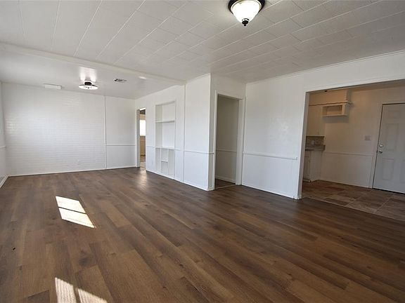 Corner Lot Charmer! Check out this 3 bedroom, 1 bathroom home that has fresh interior paint and updated flooring. Living room is spacious and has built in shelves with lots of natural light through large front windows. Bedrooms have updated light fixture combination fan and are similar in size. Bathroom has updated fixtures and a newer vanity. Large laundry room is just off the kitchen. This space would make a great pantry, extra storage, or an office. Fenced in yard and sitting on 2 lots on the corner near the football field and convenient access to city main streets. Home has been a successful rental property for several years.