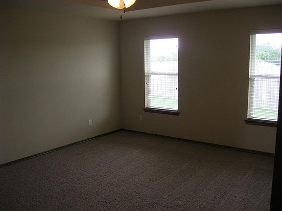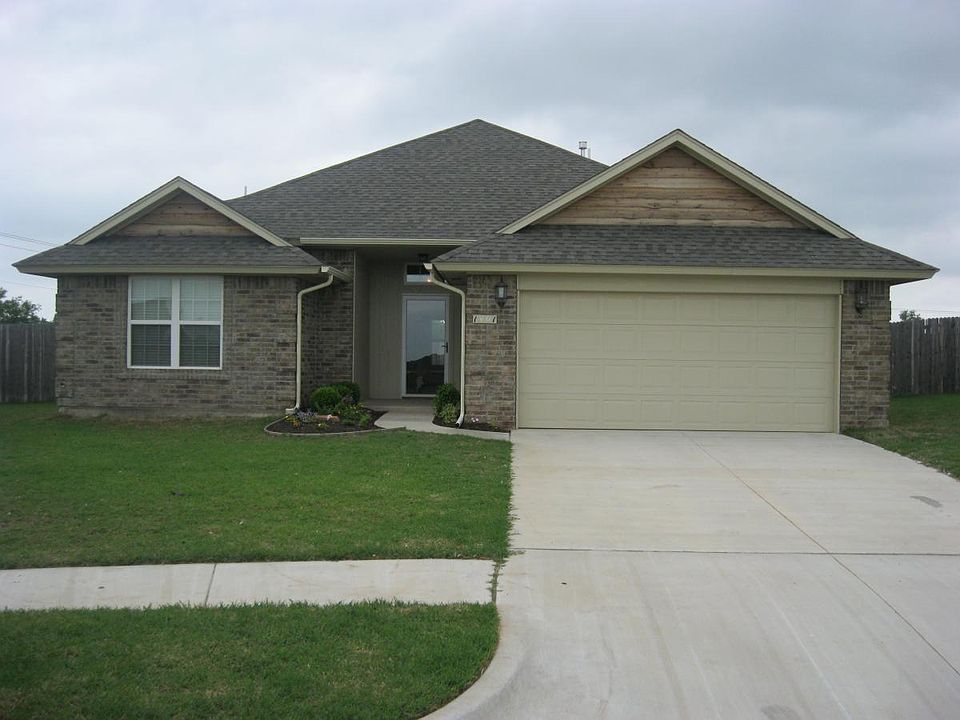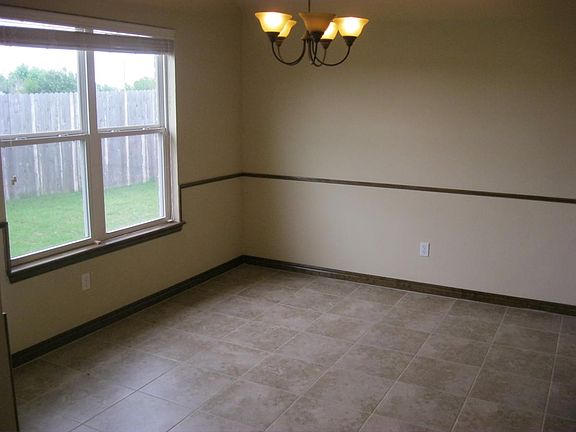 This three bed two bath two car garage home in the Meadow Run Addition comes with stainless steel appliance including the fridge and an island in the kitchen it also has custom concrete counter tops thru out the home . Master bath has separate Jacuzzi tub and shower with walk