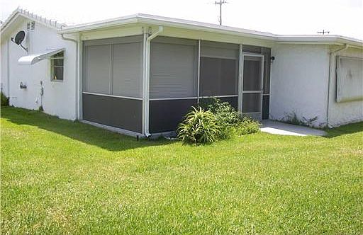 Great 2br/2ba Edgewood model, Neutral tile, new kitchen cabinets. Formal Dining room. Faux-wood blinds. Nice & Bright. Screened & covered patio with wrol-down shutters. Large front open patio. No front neighbors, very private. Roof & A/C were replaced. Extra cabinetry off from kitchen. Convenient location close to beaches, shopping, interstates , 2 major airports. Low Hoa fee.