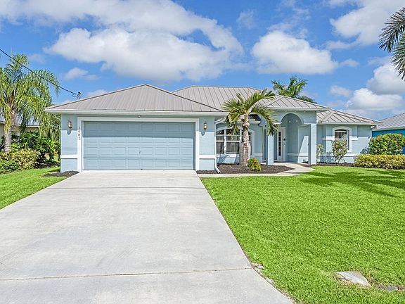 Welcome to your dream waterfront home! This beautiful 3-bedroom, 2-bath residence blends comfort, style, and true Florida living. Enjoy peace of mind with a metal roof, new AC, new water heater, and updated shut-off valves. Inside, the open floor plan, plantation shutters, and freshly painted cabinets and vanities create a bright, modern feel. Step outside to your screened-in heated pool and spacious patio with Pocket Sliding glass doors perfect for relaxing or entertaining. The private 12'x24' dock With 12' Walkway on the C-24 canal for boating enthusiasts. 10 Minutes away from C-24 Canal Park, which offers river and ocean access. With no HOA, a generator power inlet, and a newer washer and dryer, this home has everything you need for easy, worry-free living.