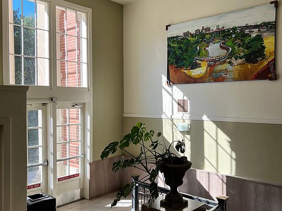 Historic characterModern vanitiesContemporary convenienceRestored hardwood floorsLofty ceilingsCorinthian columnsExposed ductwork