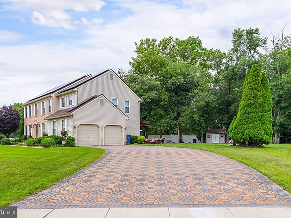 Open house canceled. Offer accepted!!! If you're in the market for a well maintained updated home with very low utility cost HERE IT IS! Beautifully updated and set on a corner lot, this semi-custom home offers space, style, and modern upgrades throughout. A paver driveway, brick-accented façade, and owned solar panels create lasting curb appeal. Inside, the center hall split layout flows from formal living and dining rooms—each with crown molding and newer LVP flooring—to the heart of the home. The kitchen has been thoughtfully renovated with staggered cabinets topped with crown molding, subway tile backsplash, recessed lighting, solid-surface HI-MAC beveled countertops, and stainless appliances including a gas cooktop, wall oven, and newer refrigerator. The vaulted family room features skylights, a fireplace flanked by circle-top windows, and easy access to a spacious first-floor study. Upstairs, the primary suite boasts a tray ceiling, walk-in closet, and a brand-new en-suite with a stand-alone tub, oversized tile shower with frameless glass and rainfall head, and a double-bowl vanity. Three additional bedrooms each offer plush carpet and ceiling fans, while the fully renovated hall bath features a frameless tiled shower and double vanity. The laundry room is conveniently located on the second floor. The finished basement expands your living space with a wet bar (stools included), lounge area, half bath, and still plenty of storage. Outside, enjoy your morning coffee on the paver patio with Sunsetter awning, storage shed, and a garage outfitted with painted floor, storage racks, and a refrigerator—both included. Peace of mind comes with numerous updates check out all the goodies: all windows replaced, newer HVAC, and new front and sliding doors, radon mitigation system, landscape well, tankless hot water heater with softner. Located in the desirable Willowbrook Farms community that offers a quick walk or bike ride to the vibrant downtown that offers so many events and it's so convenient to the ball parks and recreation fields. Serviced by Clearview School district. Come and experience Mullica Hill living.