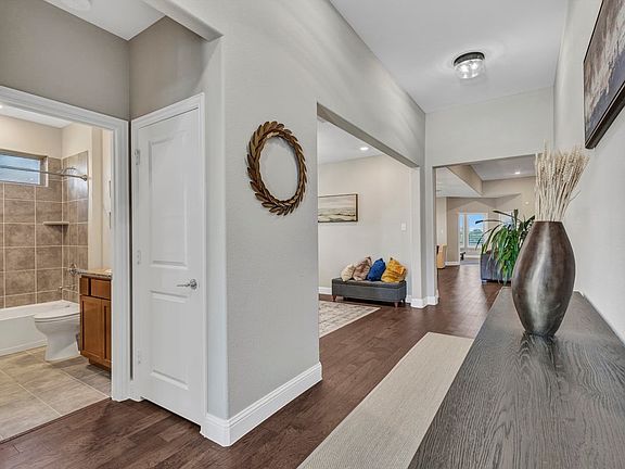Welcome to this beautiful single-story home that provides generous space for the whole family. This home has been thoughtfully designed and upgraded with both comfort and convenience in mind. Inside, you’ll find premium plantation shutters, granite vanities in all the baths, a gourmet kitchen with quartz countertops and a custom vent hood, touch-free faucet, and fresh interior paint throughout. The extended owner’s retreat offers a spa-like bath with soaking tub, frameless glass shower, and an expanded walk-in closet. Efficiency and quality upgrades include a high-efficiency water softener with whole-house catalytic carbon filtration and a top-of-the-line reverse osmosis system. Step outside to a covered patio with epoxy flooring, dual ceiling fans, a dedicated gas hook-up, and a motorized retractable screen, perfect for entertaining. The three-car garage comes equipped with a Level 2 EV charger, custom shelving, and a built-in work desk. Appliances, including the refrigerator and washer, and dryer convey, making this home truly move-in ready.