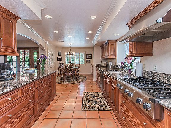 Beautiful Spanish style home with approx. 3350 s.f. per seller, sits on an ache of park-like grounds with charming pool and spa (just resurfaced). This home boosts a great remodeled kitchen with custom cabinets,walk-in pantry with wine cooler, breakfast area overlooking the backyard, top of the line stainless steel appliances, which includes 6-burner stove, trash compactor, double ovens and sub-zero refrigerator. Great entertainment room with full bar and refrigerator with double french doors leading to pool area. Downstairs has a full bath, over-sized laundry room, formal living room with fireplace, formal dining room, charming family room with fireplace and beveled glass french doors leading to covered patio and pool. upstairs there are 4 bedrooms and 2 full baths,large Master bedroom includes a soaking tub, double sinks, sit-down vanity and balcony over-looking the park-like back yard and pool, perfect for relaxing. Long driveway leads to two separate 2-car garages. This home sits on a cul-de-sac in the lovey Hawarden Hills .