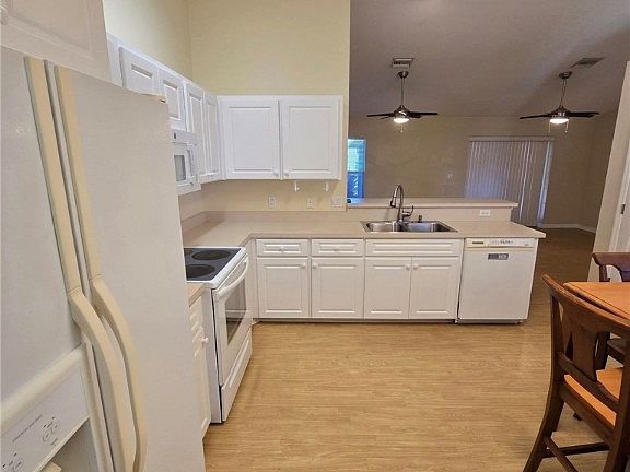 You'll love this spacious home featuring an open floor plan and a bright eat-in kitchen. It also offers an indoor laundry room and a 2-car garage for added convenience. Step outside to relax on the screened porch surrounded by beautiful landscaping and a fenced backyard perfect for enjoying the Florida lifestyle.
