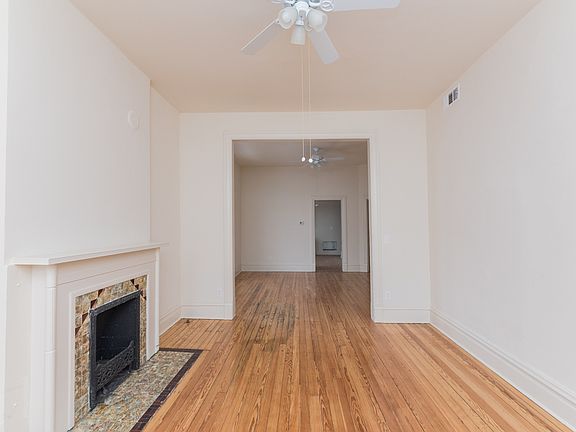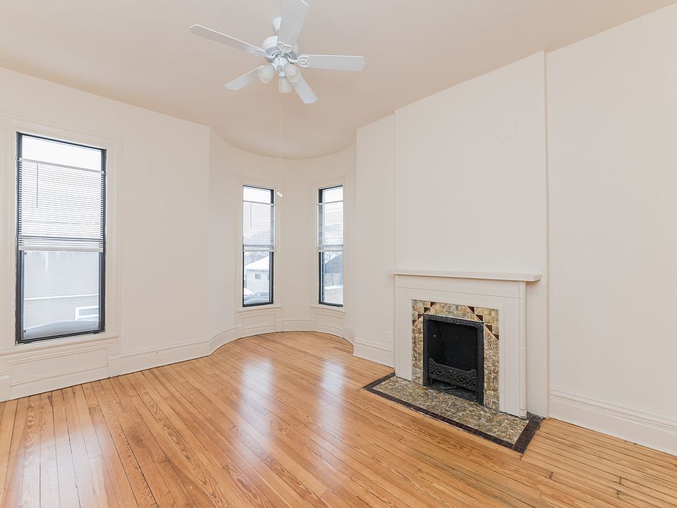 Spacious corner 2 bedroom apartment on the top floor! Unit features large living room with decorative fireplace, separate dining room, updated kitchen with dishwasher, and hardwood floors throughout. Building has central heating and a laundry room available for tenants. $75 Application Fee | Security Deposit of 1 Months Rent + $100 | Cats ok.