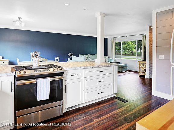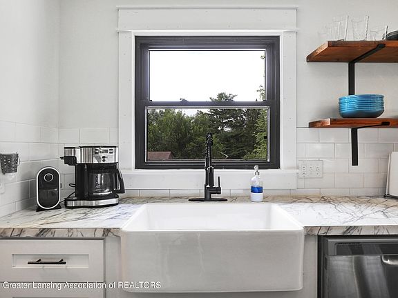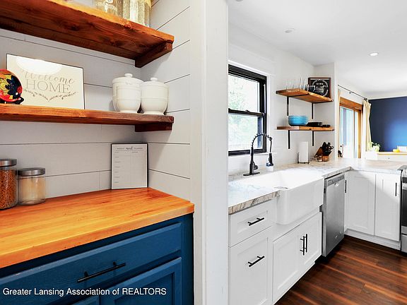 Main floor remodel is straight out of HGTV! Sellers knocked down a wall toopen up the space, added a brand new white kitchen with some open shelving, vinyl plank flooring throughout the kitchen, living and dining rooms, ship lap walls and some ''wallpaper'' in the foyer. This 3 bedroom 1.5 bath home has hardwood floors in the bedrooms, finished walkout lower level to a covered patio, and don't miss the 24 x 32 pole barn in addition to the 1 car attached garage! The sewer line has been replaced and huge dead pine trees removed on this almost 1/2 acre homesite. Conveniently located near shopping and expressway and quaint downtown DeWitt. Also within 15 minutes of MSU, downtown Lansing, Eastwood Towne Center and so much more! Home Warranty provided by seller