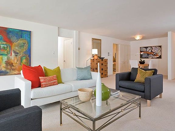 With only 11 units, this magnificently located building can house only the lucky few! This unit is 1,666 square feet of elegant living space which includes a huge living room/dining area, two roomy bedrooms, a sunny eat-in kitchen and a private balcony from which to view the wooded outlooks. There is even a lovely working fireplace as well as the stylishly done kitchen. The kitchen has fine appliances including a wine cooler. There is designated parking in the garage, although here one coul...