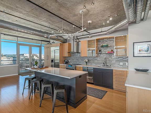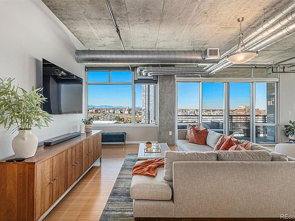 A serene sanctuary overlooking the heart of Denver. This stunning corner residence at Waterside Lofts offers endless natural light, sweeping mountain and city views from two walls of windows, 10-foot ceilings, and a layout that perfectly blends openness with functionality. Enjoy two full bedrooms plus a spacious study with the flexibility as a non-conforming third bedroom, home office, or creative retreat, making it ideal for modern living. 2 full bathrooms plus a 3rd ¾ bathroom, laundry room with plenty of storage plus walk in closets in all three rooms. The updated kitchen features new countertops, a large island, stainless steel appliances, and Range is an induction top (but has a gas line available)—perfect for both everyday living and entertaining.