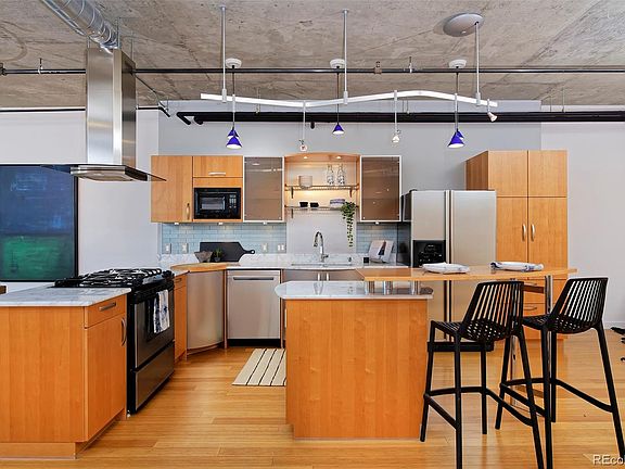 Rarely available mountain view condo in desirable Waterside Lofts. This original owner unit features stainless steel appliances, newer Carrara marble counters, custom Studio Becker cabinetry, Dornbracht plumbing fixtures, Hafele finish hardware, smooth coat walls, wood floors throughout and more. The large kitchen and open floor plan are perfect for entertaining. The well sized primary suite features a walk-in closet and a wonderful 5-piece bathroom. Enjoy unblocked views of the mountains and the Cherry Creek from your private balcony with a gas line for a grill. This full service building has a 24hr front desk person, large gym, and even private conference room. Live in the middle of all that LoDo and Union Station have to offer - shops, restaurants, Union Station is just 2 blocks away, the Cherry Creek path is right outside the building, sporting events and more. This is a fantastic loft/condo in one the best full service buildings in Denver. Welcome home.