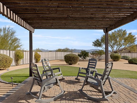 Escape the Scottsdale hustle, enjoy the desert serenity and capture the mountain views while you relax under the private covered patio to watch the sunsets! This beautiful, soft, southwestern style home is built with quality; you'll notice the travertine tile flooring laid throughout the main rooms and the Alder wood cabinets, beams and accent work detailed around the home.
