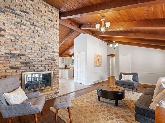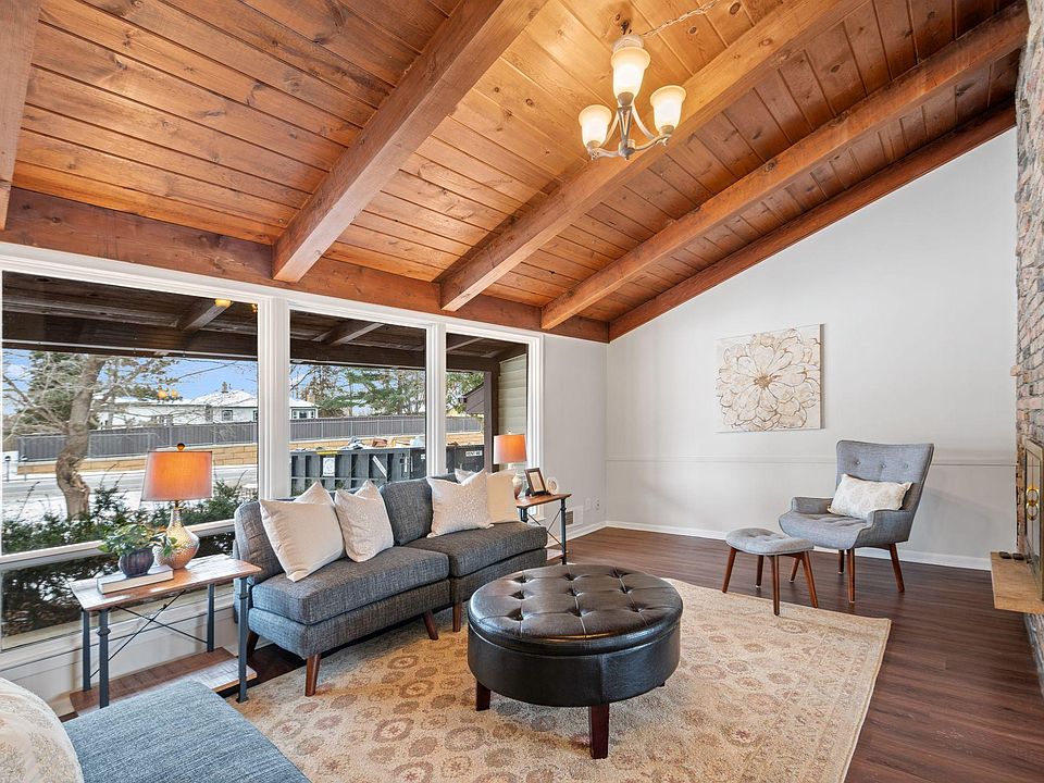 This clean, single-level home in Minnetonka, conveniently located off Excelsior Blvd, sits on a spacious lot of over half an acre. The main level features vaulted ceilings with beautiful wooden beams, 3 bedrooms with refinished flooring, and 1.75 bathrooms, including an en suite. The lower level offers 2 additional rooms perfect for non-conforming bedrooms or offices, an additional full bathroom, a second kitchen area (a refrigerator will be added to the lower level prior to closing), and a large recreation room finished with luxury vinyl plank flooring. With a separate entrance to the lower level, a large backyard, and a deck for outdoor enjoyment, this home also boasts a larger 2-car garage and a U-shaped driveway with two entrances, making it easy to avoid backing onto Excelsior Blvd. The roof was replaced around 2021!