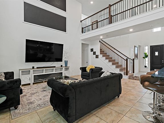 Gas stoveHigh ceilingsFormal dining roomStainless steel appliancesTile flooringGrand entrySpacious family room