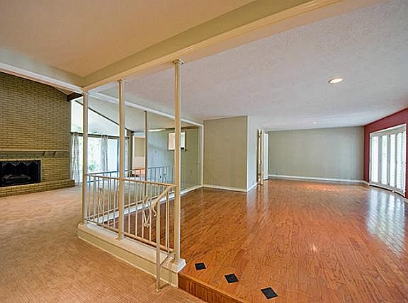 Unique on huge lot. Split level liv areas w 28 x 16 den, 13ft brick frpl flanked by wall of wndws, vaulted ceilings, copper beams. Overlooks gorgeous lush heavily treed big bckyrd. Ceiling to flr bay wndws w custom plantation shutters in all rms. Professional kit w ss gas JennAir cooktop & hood, dble ovens, built in sub zero fridge, 15ft of granite cntrs & cabs. Rfnshed hrdwds, ample bdrms, 17x16 mstr w built-in dressing area & cedar walk in.