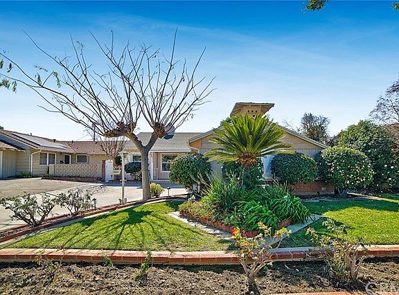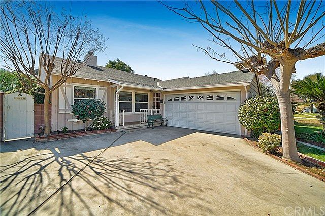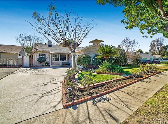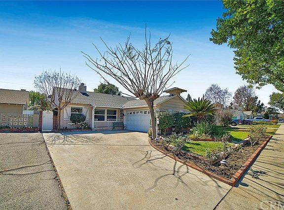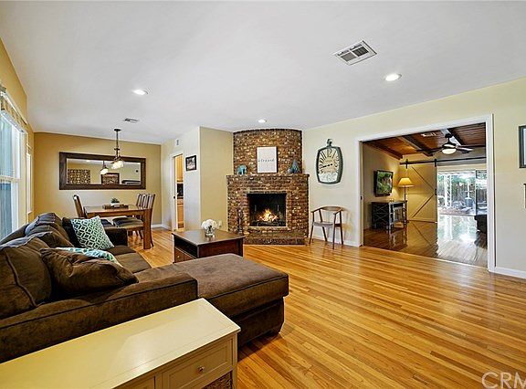 Beautiful, turnkey 3 bed, 2 bath home in a quiet, desirable neighborhood. Step into the entryway w/ coat closet onto gleaming hardwood floors which flow throughout the home. The great room boasts a large living room highlighted by a majestic brick fireplace w/ mantle and raised hearth, recessed lights, and large double pane windows overlooking the front grounds that bring in abundant natural light, and a dining room featuring a unique rustic pendant light fixture, and pocket door access to the remodeled kitchen. The kitchen features custom Thomasville cabinets, granite countertops, newer stainless steel Samsung built-in microwave and dishwasher, recessed lights, ceiling fan, built-in dining bench w/ hidden storage, and a separate large walk-in pantry off the kitchen for additional storage. The family room is picturesque and features a magnificent exposed beamed ceiling, white wood panel walls, new hardwood floors, ceiling fan, double pocket doors to the living room and double barn doors to the office/bedroom. The bedroom wing features 2 large bedrooms w/ hardwood floors, hallway closet storage, and a full bathroom w/ granite vanity countertop, tile shower over tub, and tile floor. The 2nd bathroom includes a pedestal sink, tile walk-in shower and travertine floor. The laundry room has washer and gas dryer hookups and new white shaker style cabinets and door to the back yard. The rear grounds feature a relaxing covered patio, brick pavers and planters, and mature fruit trees.