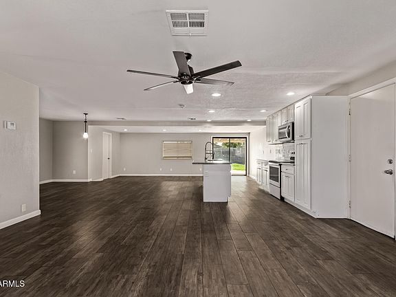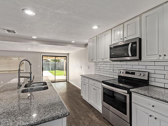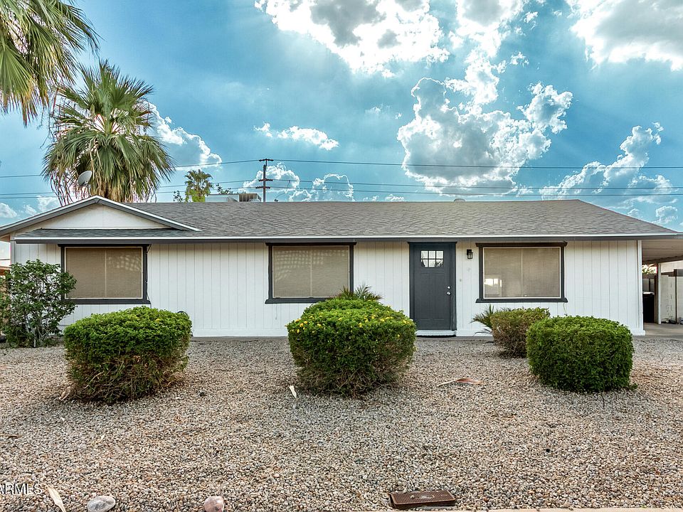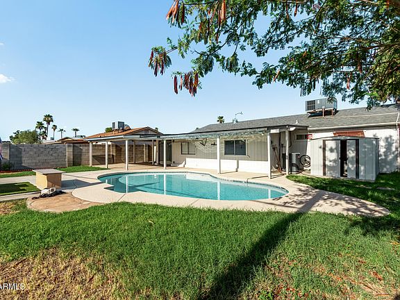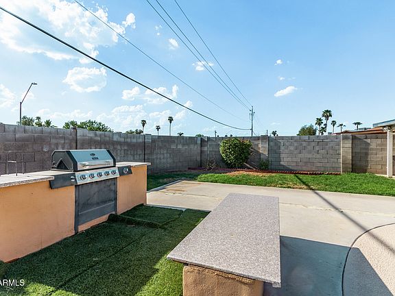 Check out this charming, well-maintained home in a great Phoenix location! Providing 3 beds, 2 baths, mature landscape, and a carport space. The inviting interior features a neutral palette, recessed lighting, wood-look tile flooring in common areas, and soft carpet in bedrooms. Functional and modern floor plan with a spacious, seamlessly flowing open layout! The impressive kitchen is the center, boasting SS appliances, granite counters, subway tile backsplash, white cabinetry, and an island w/breakfast bar. The primary bedroom has an attached bathroom for added comfort. If you want to relax or have a fun gathering, the large backyard awaits! Promising year-round enjoyment with a relaxing covered patio, built-in BBQ grill, natural grass, storage shed, and a private pool. Ready to move in!