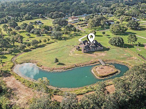 Welcome to your own piece of paradise in Alvin, Texas! This property boasts 5.4 acres of land with a beautiful pond featuring fish, an island, and a charming bridge. With 3-4 bedrooms and 2 1/2 baths, this home also includes an oversized garage with space for 2 cars, a golf cart, and a storage closet. The open concept layout, abundant natural light, enclosed sunroom, granite countertops, and tall ceilings make this home a true gem. Looking to add more buildings?! This property has a large enough well and septic system to support a mother-in-law suite or double wide trailer. Bring your RV, property has RV hook-ups! Don't miss out on the opportunity to own this stunning property! Per the owner, this home has never flooded.